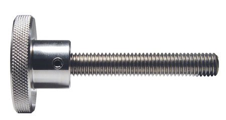 Assembly consists of knurled knob, listed above, with threaded stud. Stud assembled to knob with light press fit and held in place with spring pin. Steel knobs are 12L14 with black oxide finish. Stainless knobs are Type 303 with a 420 stainless steel spring pin and 18-8 stainless stud. Specials made to order.