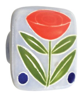 Acorn Heavy Duty Forged Large Square Ceramic Knob Light Blue w/ Orange Rose Cabinet Knob (PS6YP) Reviews