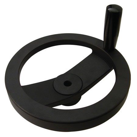 Hand Wheels - Aluminum With Black Powder Coat Finish Two Spoke With or Without Revolving Handle - Constructed of cast aluminum with a matte black powder coat finish. The finish can withstand temperatures up to 500 F. Available with or without a revolving handle.